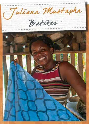 Juliana Mustafa is a talented artisan who has established herself as one of Global Mamas finest Cape Coast batikers, but she proudly explains that she is a “mother first and a batiker second.” While her family is most important to her, Juliana is also a successful businesswoman, grateful to Global Mamas for their help,growing her business. “They have organized training and health care programs for us.” She says, “They pay for bulk orders completely, which has helped me buy a car.” However, Juliana nearly always speaks of batiking and business in the context of how it has helped her family, “I am proud of being able to send my children and 5 year old niece to school. I am able to meet all my children's needs.”