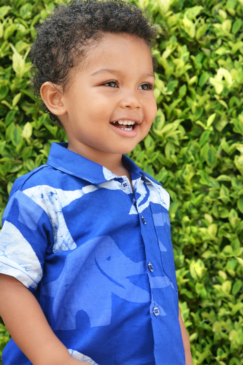 Button Down Shirt: Elephants – Blue-Organic