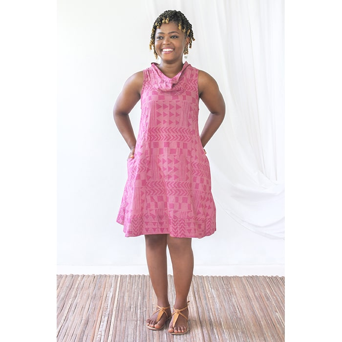 The Eli Dress: Where fashion meets fun! This mini-length delight boasts a playful cowl neck, fitted bust, and a relaxed a-line shape. Complete with handy inset pockets, it’s perfect for all ages. Get ready to rock your style and turn heads in this trendy must-have!
