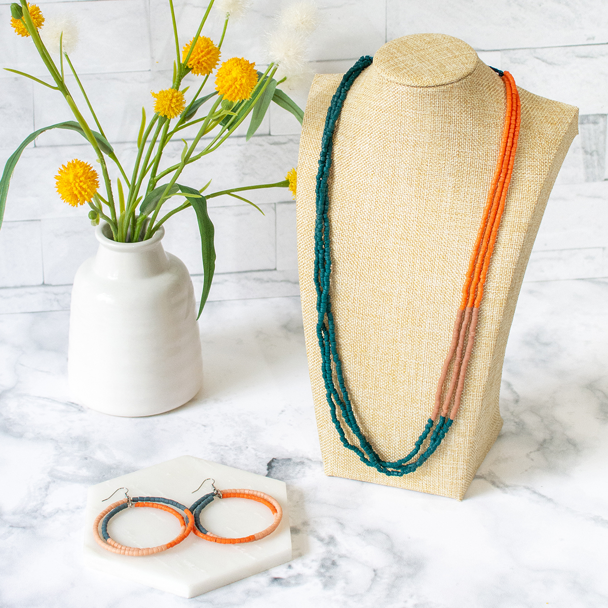 Global Mamas’ beads are made from recycled glass. Due to each piece’s individuality, all sizes and lengths are approximate. Necklace strung on braided thread cord.