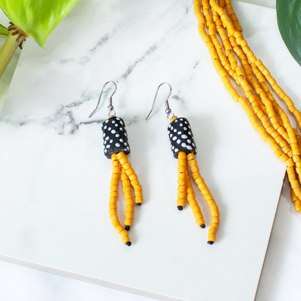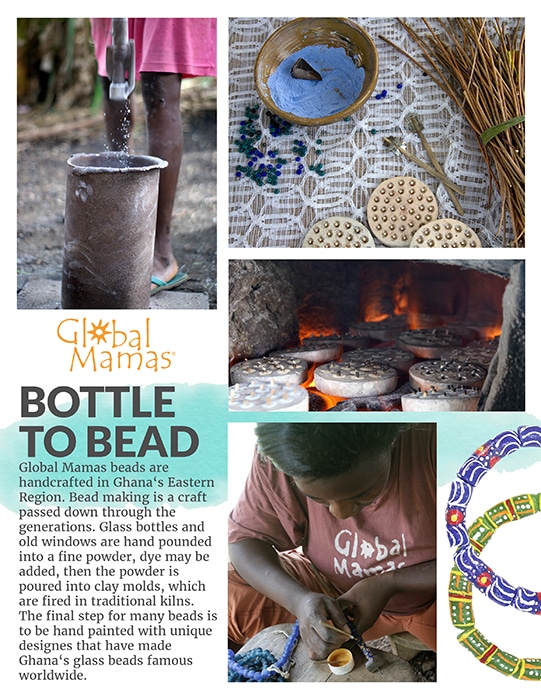 Global Mamas’ beads are made from recycled glass. Due to each piece’s individuality, all sizes and lengths are approximate. Ear wires are surgical steel. (~3″)