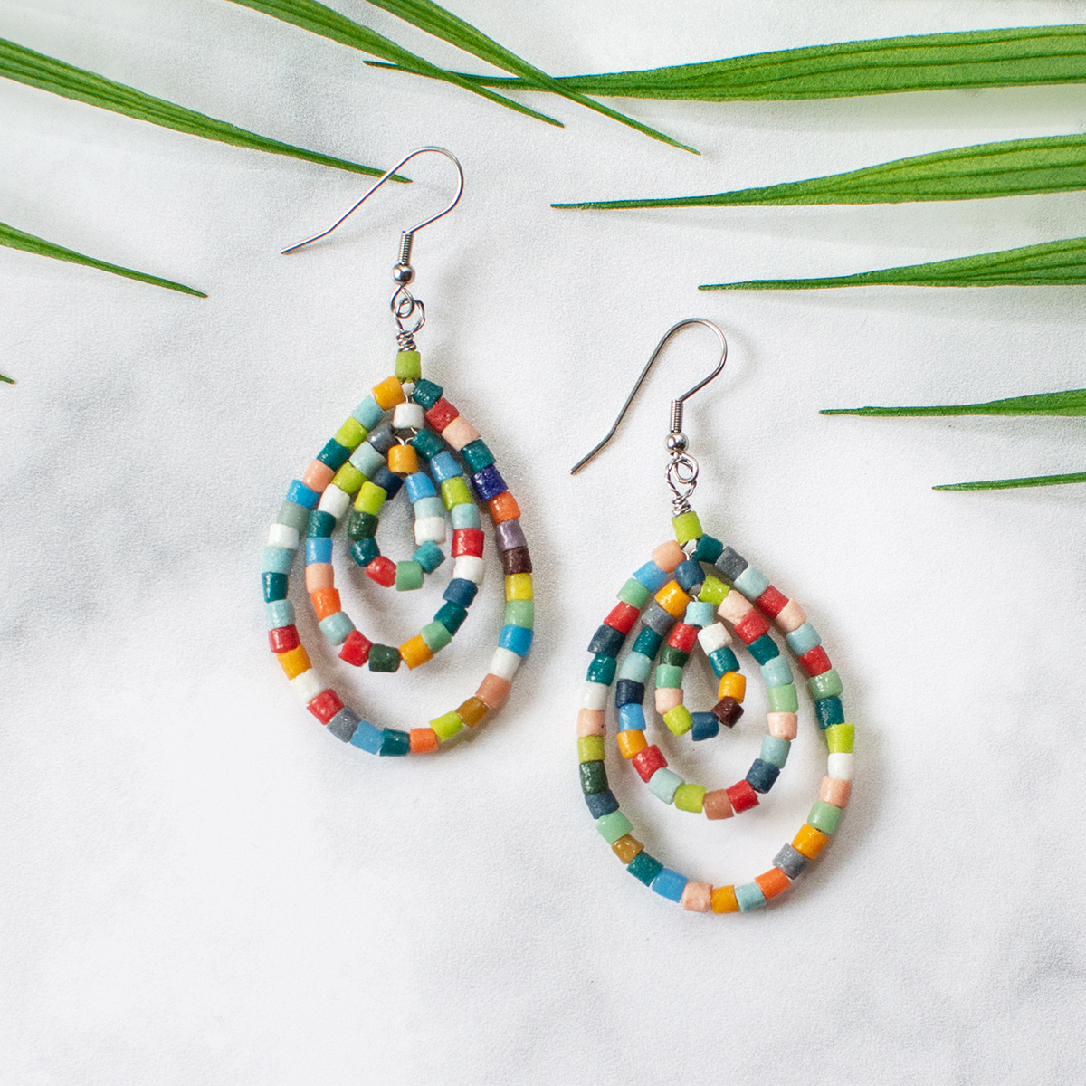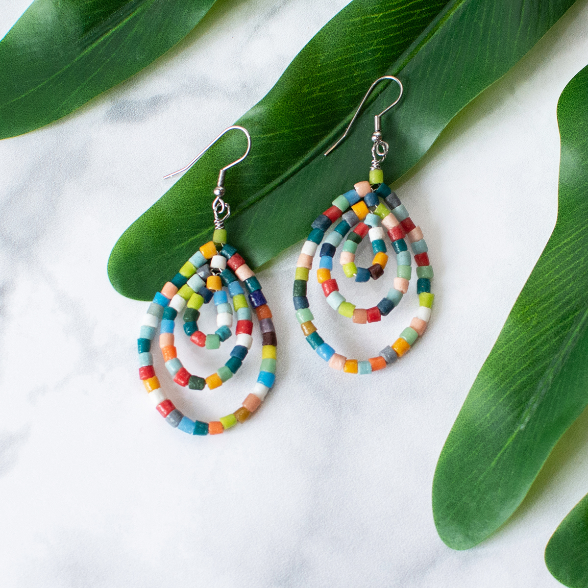 Global Mamas’ beads are made from recycled glass. Due to each piece’s individuality, all sizes and lengths are approximate. Ear wires are surgical steel. (~1.25″)