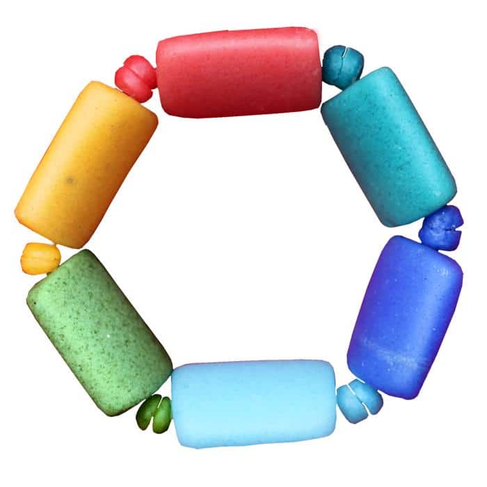Global Mamas’ beads are made from recycled glass. Due to each piece’s individuality, all sizes and lengths are approximate. Bracelets have clear elastic band. (~7.5″)
