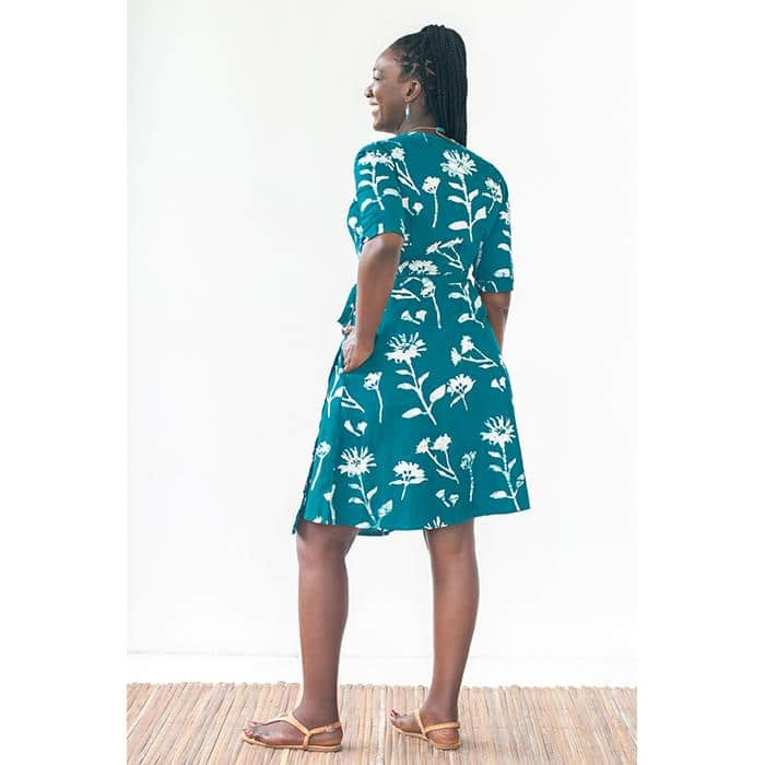 Wrap Dress 3/4 Sleeve: Wildflower – Teal-Organic
